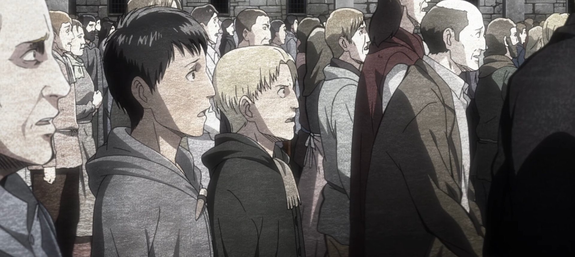 - Reiner and Bertholdt’s appearance: Young Reiner and Bertholdt are also shown within a few minutes of Annies’ appearance.