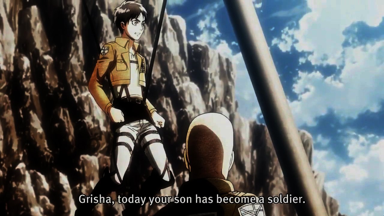 - “Grisha, today your son has become a soldier.”: Shadis’ words to himself hints to some connection between Keith Shadis and Grisha Jaeger.